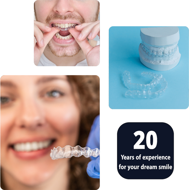 بالإضافة إلى التقويمات التجميلية، تقدم ®Royal Aligner حلولاً متخصصة لطحن الأسنان، الشخير، الحماية الرياضية، وتبييض الأسنان.