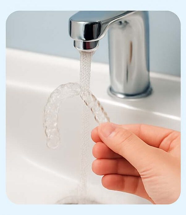To clean orthodontic aligners, rinse them daily with cold or lukewarm water—never use hot water, as it can warp the plastic. Use a soft-bristled toothbrush and clear, unscented antibacterial soap to gently brush away buildup. Avoid using toothpaste, which may scratch the aligners. For deep cleaning, consider aligner cleaning tablets or solutions as directed by the manufacturer. Always store aligners in a clean case when not in use.