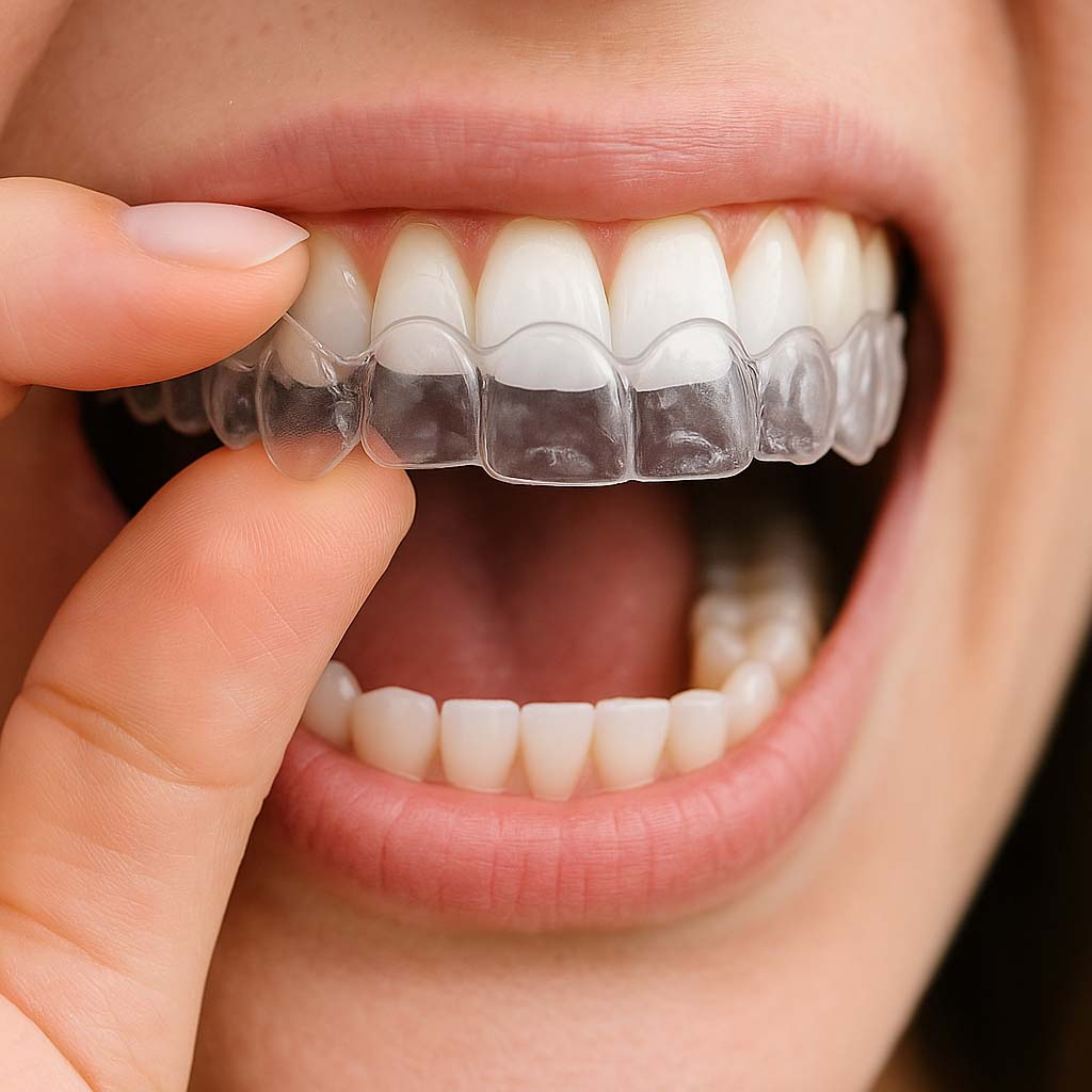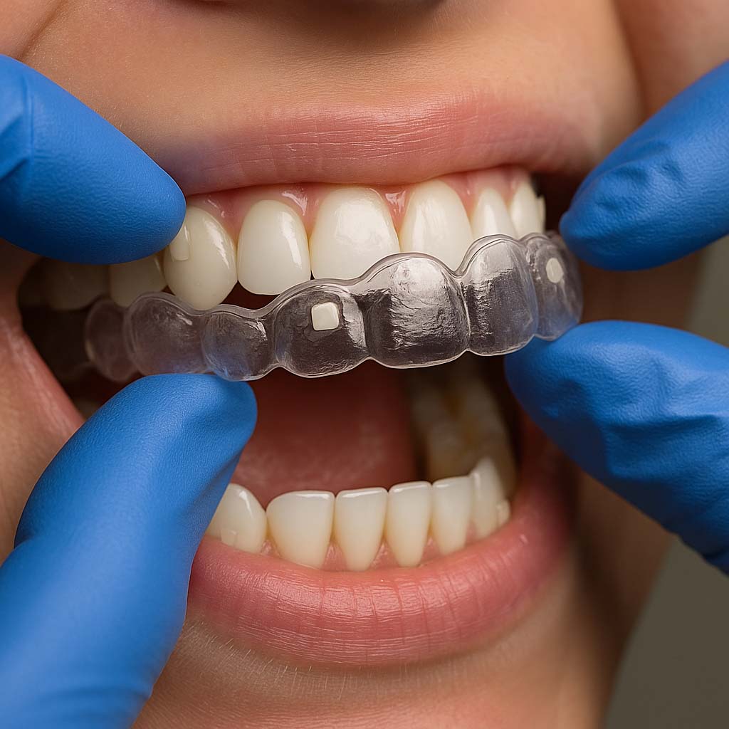 A bleaching aligner is a specialized clear tray designed not only to align your teeth but also to whiten them simultaneously. These aligners have built-in space or compartments to hold whitening gel, allowing patients to undergo teeth whitening while wearing their orthodontic aligners. It's a convenient, dual-purpose solution for achieving both straighter and brighter teeth during treatment.